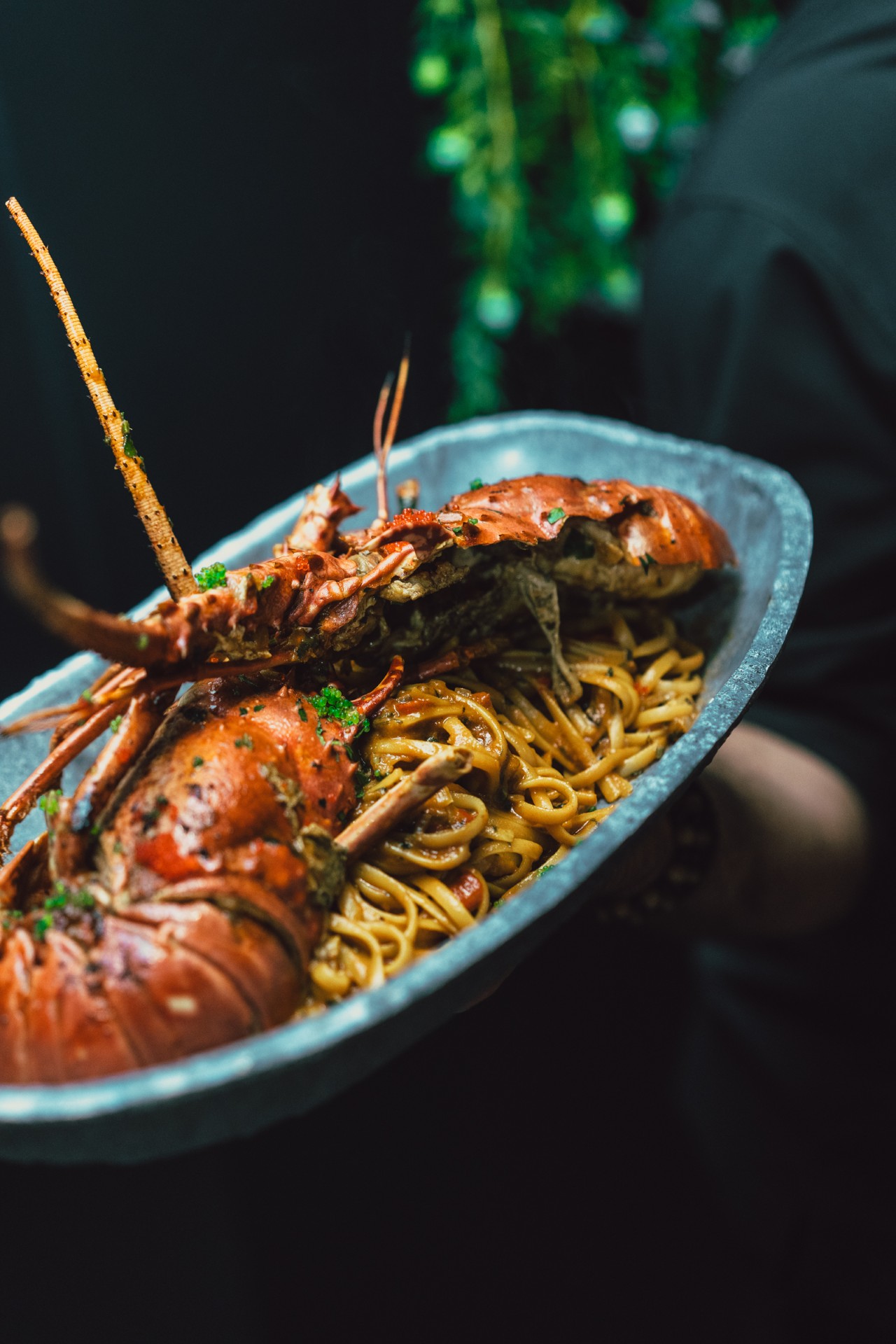 Lobster Linguine for 4 persons with fresh Santorini tomato sauce, colored peppers, herbs and fennel