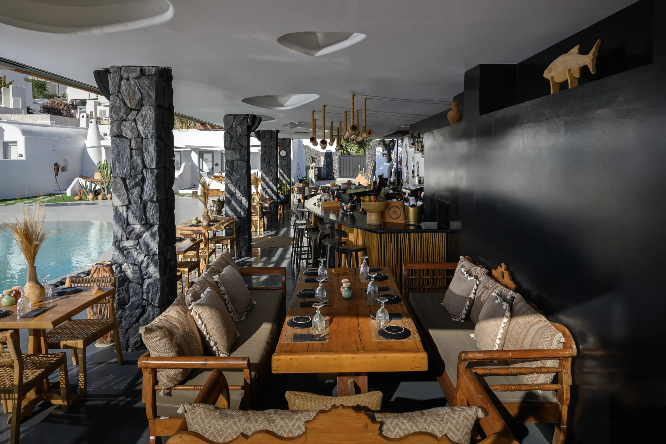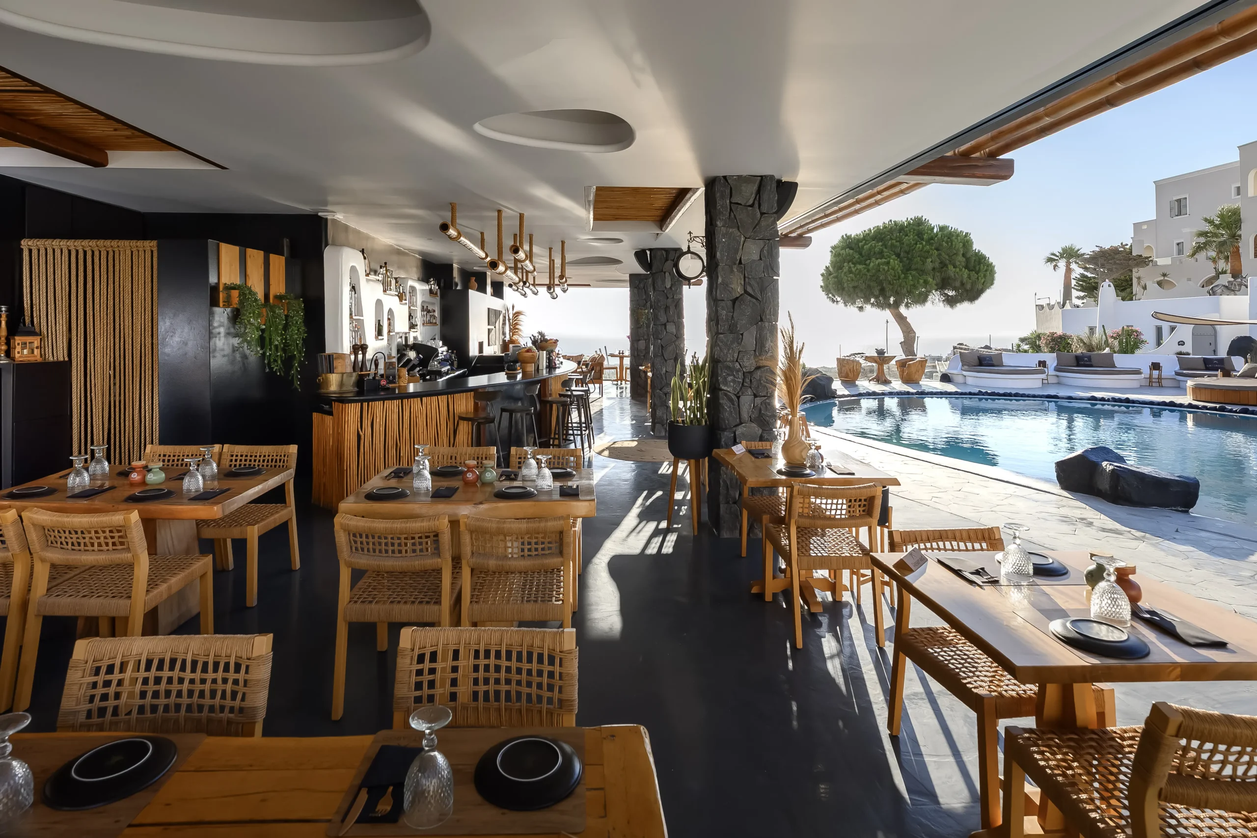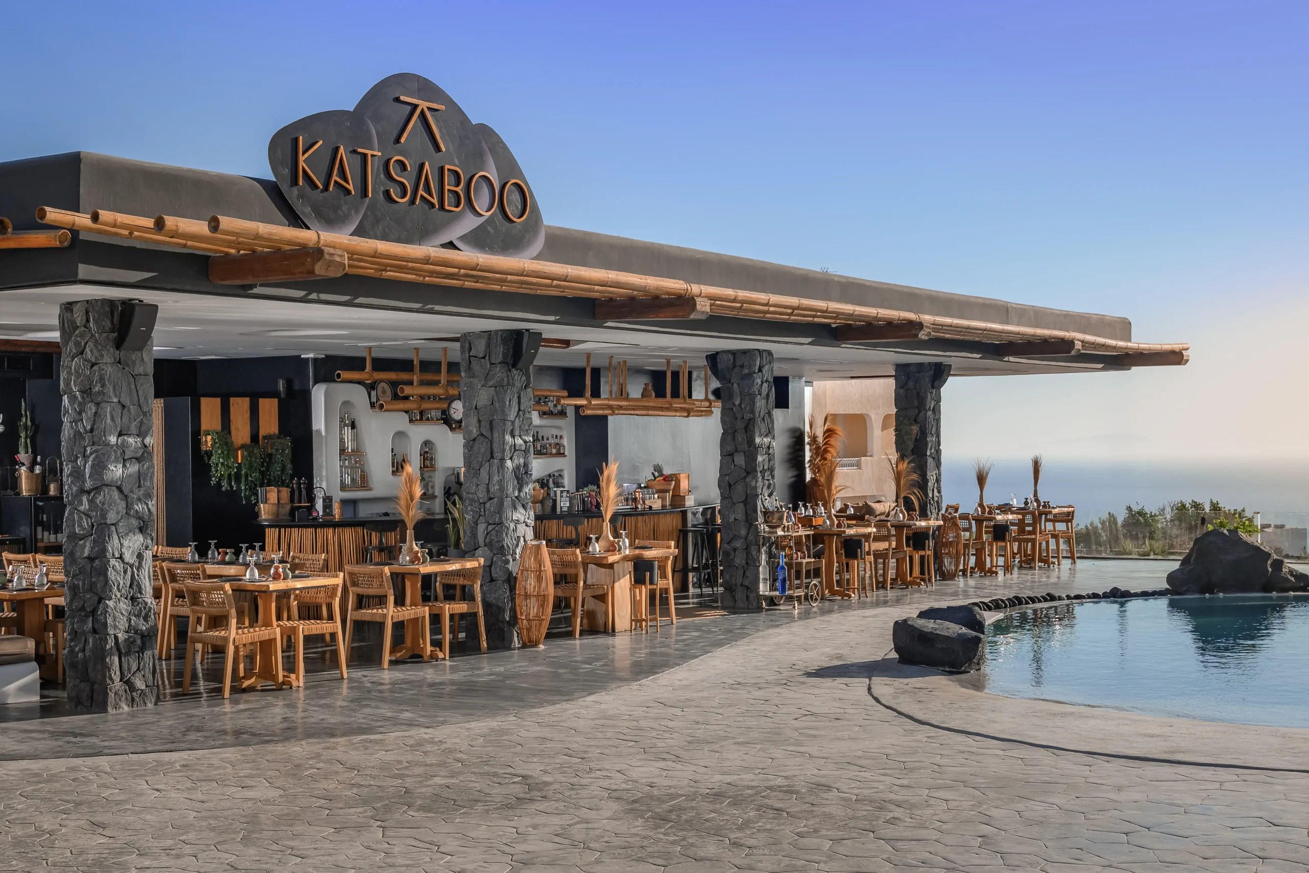 Katsaboo Restaurant is a gastronomic destination in Santorini, a spot where one can enjoy authentic Santorinian cuisine with a modern twist in a sophisticated environment by the elegant lounge pool with volcanic rocks along with the exceptional, personalized services.